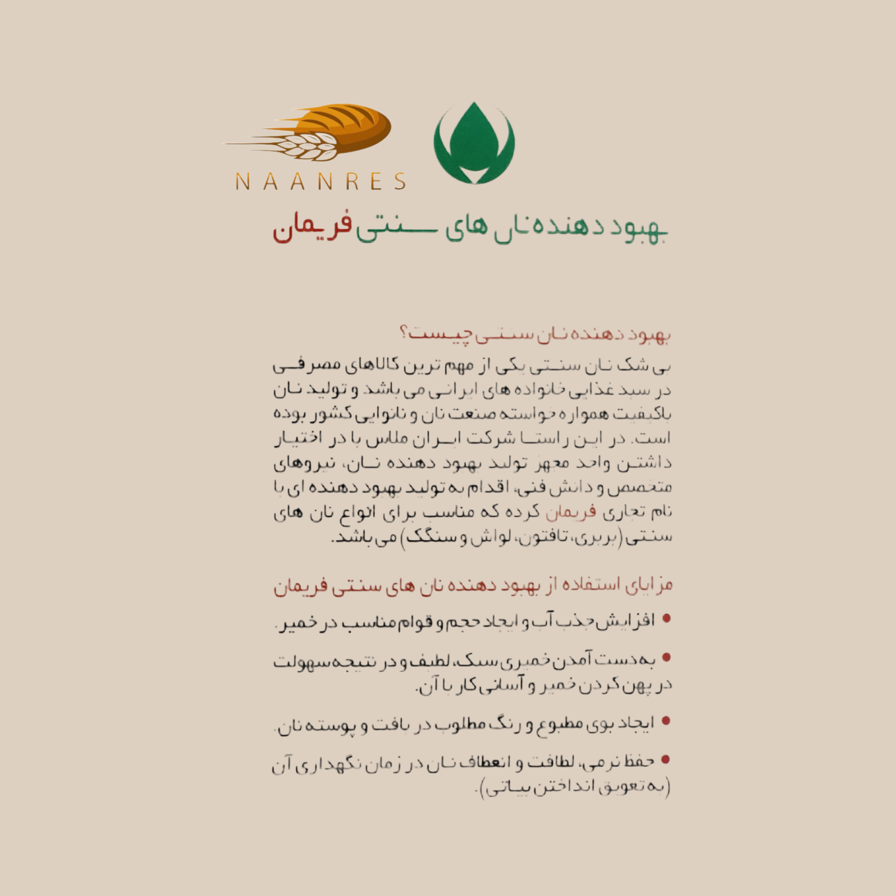 بهبود دهنده نان های سنتی F102/ برند فریمان/ویژه آردهای ضعیف تا متوسط - 500گرمی